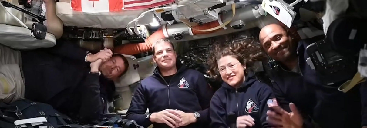 WissenschaftFoto: NASA, Artemis II Crew on flight day 4, als gemeinfrei gekennzeichnet, Details auf Wikimedia Commons